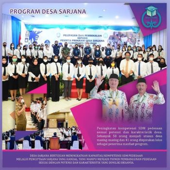 Desa Sarjana yang merupakan program inovatif untuk pengembangan dan peningkatan sumber daya manusia di tingkat desa. Program ini dilaksanakan dalam bentuk pemberian bantuan beasiswa kepada putra-putri daerah yang diarahkan untuk menguasai disiplin ilmu sesuai karakteristik, potensi, permasalahan maupun kebutuhan desa.